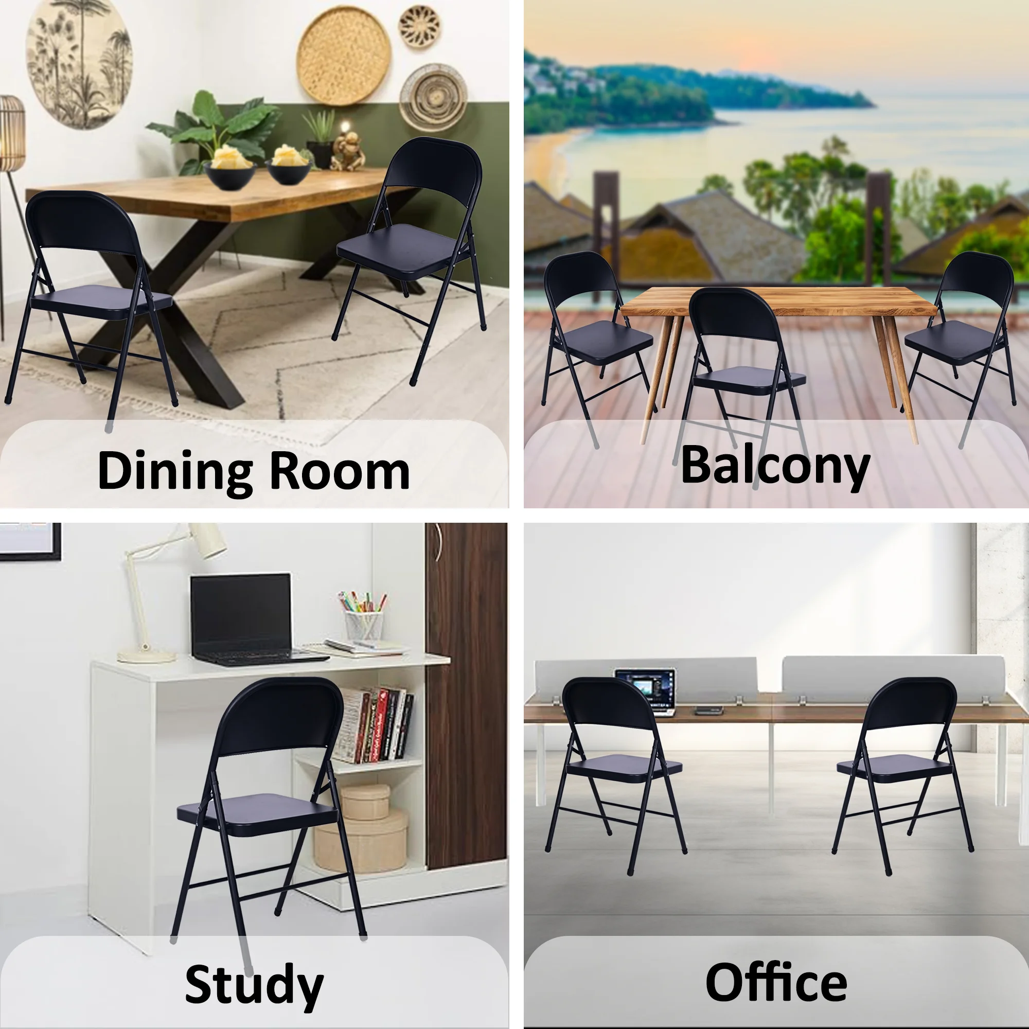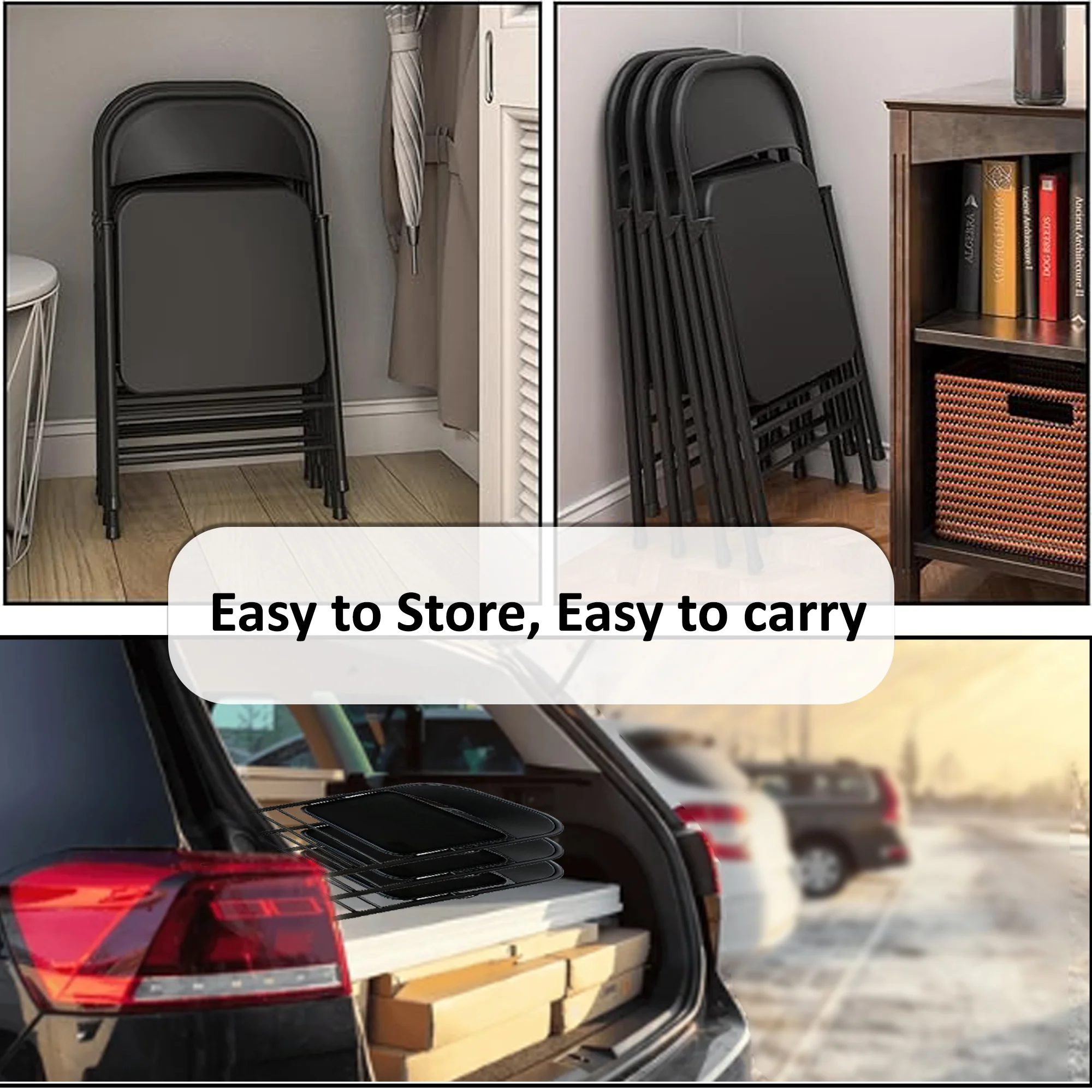 High Quality Material — The metal frame of the folding chair is made of high quality steel and the surface is powder coated to make it more durable and anti-corrosion.”