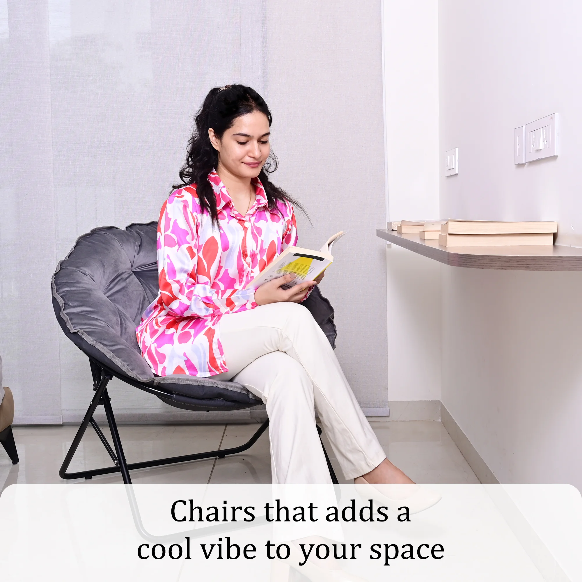 is called so because of its round shape. Extremely comfortable and also foldable- can be used anywhere in the house. Perfect to sit and laze in on a Sunday afternoon and watch your favorite movie! It has been load tested for 120kgs.”
