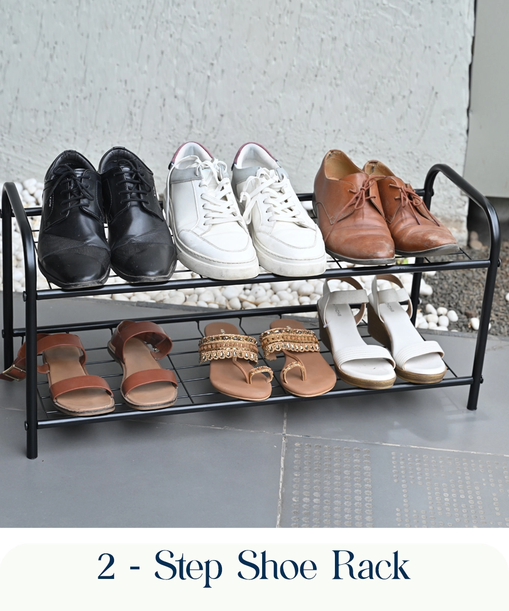Imagine you have guests over your place and your shoes are scattered or you are in a hurry to go out but fail to find the appropriate shoe! Well to end this problem of arrangement all you need to ensure that you have a perfect shoe-rack where you can keep and exhibit your enviable collection of shoes. This sleekly designed shoe rack comes in two shelves. This means that not just you have more space to flaunt your shoes but you also save your domestic space. Alternatively this can also be used as a multipurpose rack to keep anything from book, makeup and even potted plants!